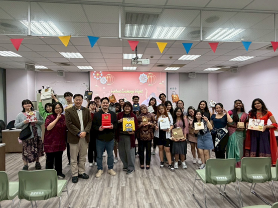 Image (No. 2) Description: Group photo of the lucky draw session during the Culture Exchange Night. The lively atmosphere and active student participation enhanced interaction and engagement among participants.