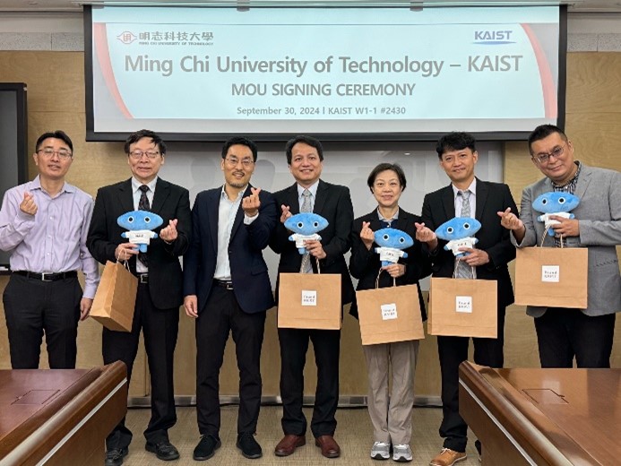 Supplementary Explanation for Figure 1: A group photo from the MoU signing ceremony between the Department of Materials Science at Ming Chi University of Technology, represented by Department Chair Prof. Chi-Hsien Huang (4th from right), Chair Professor Prof. Jyh-Wei Lee (2nd from left), Distinguished Professor Prof. Ting-Yu Liu (1st from right), Prof. Li-Chun Chang (3rd from right), and Prof. Yu-Ching Huang (2nd from right), and the Department of Materials Science at KAIST, represented by Department Chair Prof. Byungha Shin and Prof. Sung Hoon Kang.