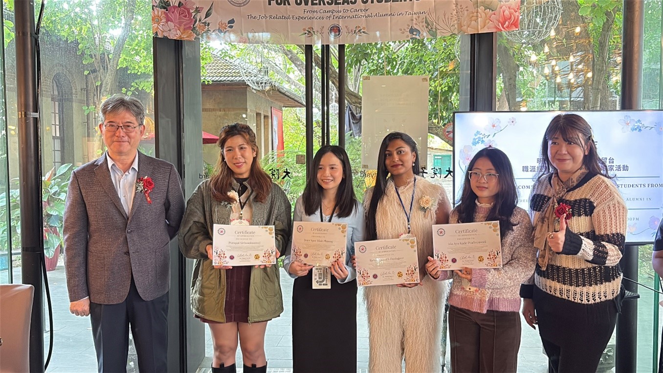 在校友經驗分享,多位來自不同國家與專業背景的境外畢業生,分享其留臺求職與職場發展的實務經驗。越南籍視覺傳達設計所校友段明芳,說明在臺求職過程中履歷撰寫與面試準備的關鍵策略;泰國籍國際企業管理碩士校友黃麗華,則從語言學習與文化適應切入,分享逐步融入臺灣社會的心路歷程;印度籍電子工程所校友志浩,深入解析臺灣職場溝通方式與工作文化;印尼籍國際企業管理碩士校友尤妮雅,也分享其留臺生活調適與工作、生活平衡的經驗。校友們真誠且實用的分享,引發在場學生高度共鳴,交流互動踴躍。