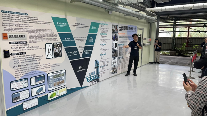 圖三說明:明志科技大學舉辦「2025智慧載具論壇」與會貴賓參觀智慧載具研發中心實驗室,了解車電整合與測試研發成果。
