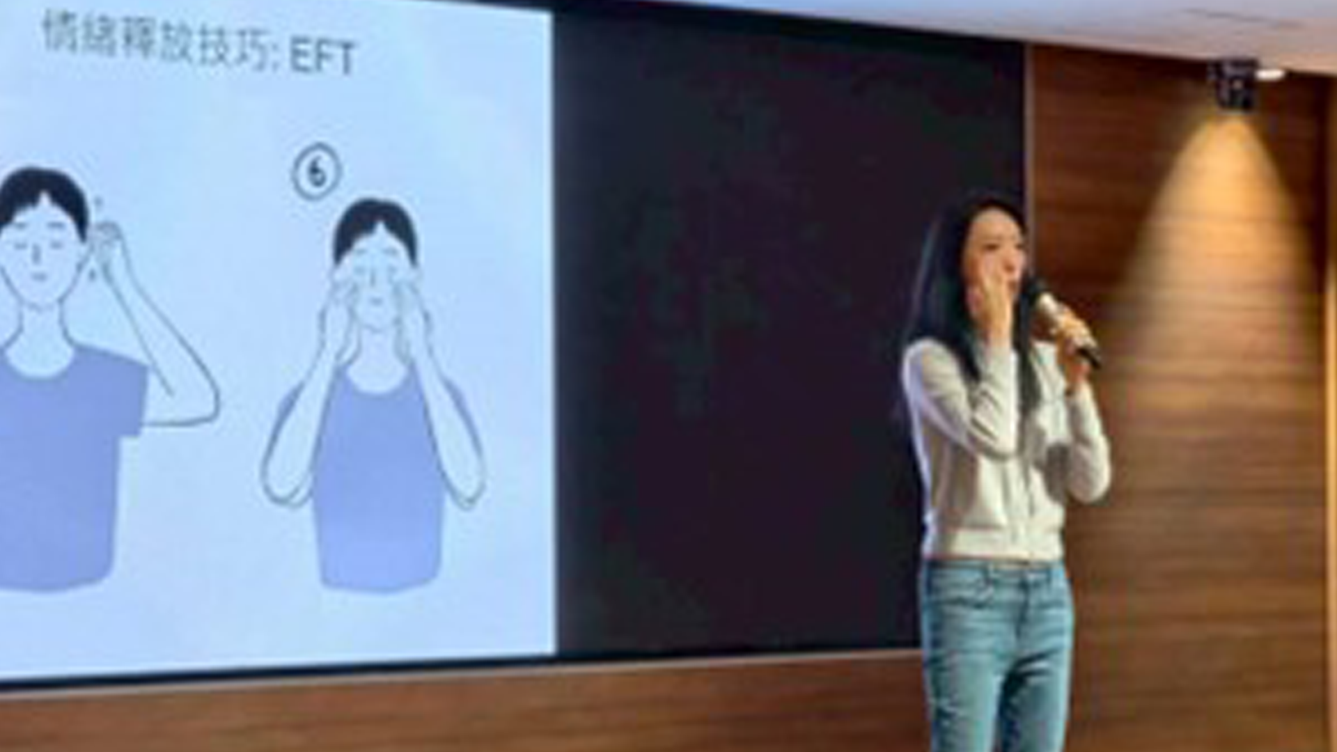 At the beginning of the lecture, the speaker explained the sources of stress, noting that stress and emotions are often closely tied to one’s self-concept. When individuals frequently feel that they are “not good enough” or “imperfect,” emotions tend to accumulate and persist in daily life. After analyzing the relationship between emotions and stress, the speaker drew on Eastern theories of acupressure points and qigong to explain how emotions can be soothed and processed. For example, by working with acupressure points on the scalp, philtrum, and jaw, the speaker guided participants through hands-on massage practices, enabling them to directly notice and regulate their own emotions.
