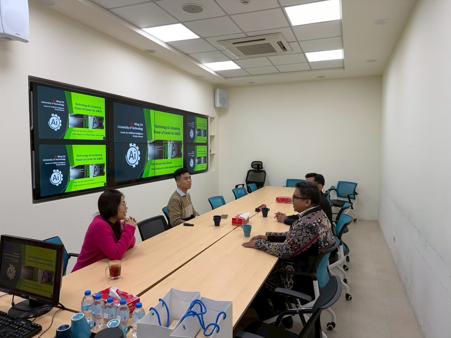 USH 訪問團首先參觀本校校史室,深入了解明志科技大學的辦學理念與發展歷程;隨後於午餐交流中,雙方就未來合作方向及學生交流機制進行進一步意見交換。下午行程由林金祥老師帶領參訪 行銷與設計學士學位學程,介紹課程特色與教學規劃;接續前往人工智慧暨資料科學研究中心,由林淯慈老師分享研究成果與未來發展方向,讓訪賓更全面了解本校在教學與研究上的整體能量。