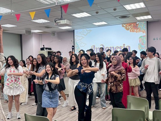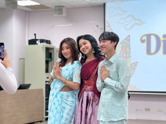 此外,多數學生穿著傳統服飾參與,甚至進行文化服裝交流,使文化學習從「觀察」轉化為「親身體驗」,充分展現跨文化互動的深度與溫度。整體活動獲得高度肯定,有效提升跨文化理解、社群連結,以及學生對國際學習環境的認同感與歸屬感。